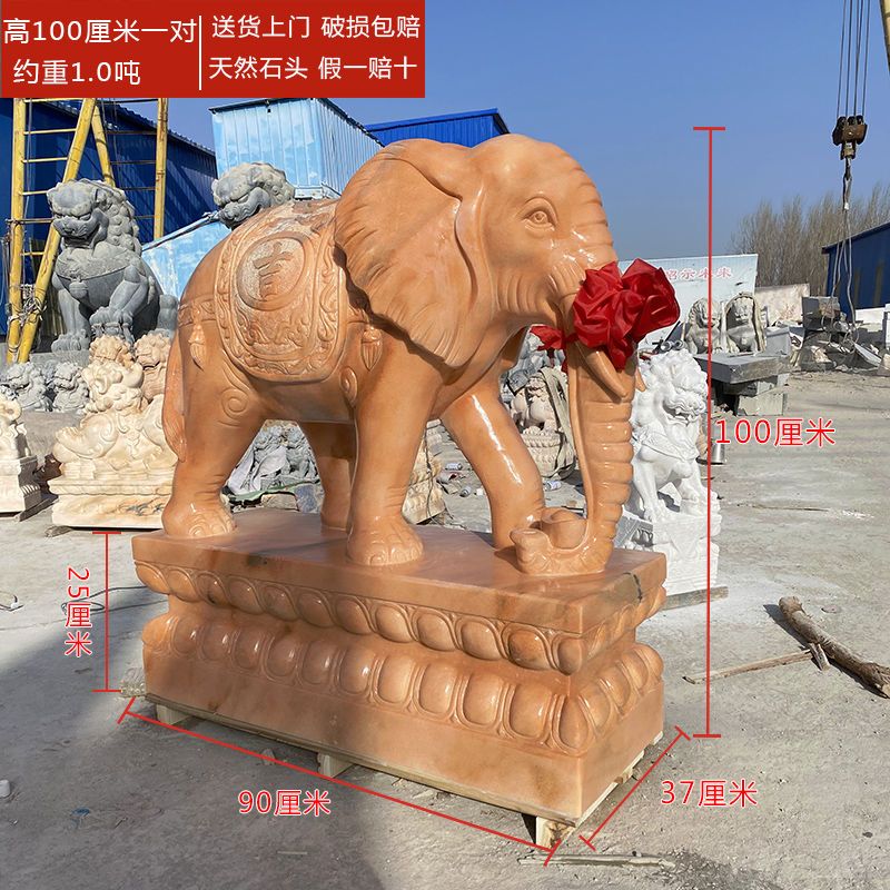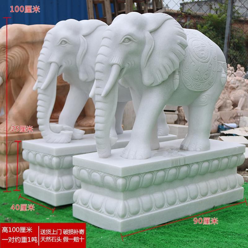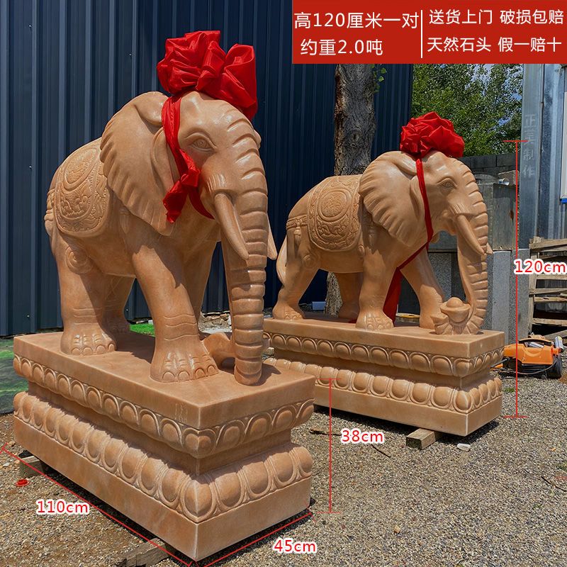 石雕大象一对汉白玉青石晚霞红公司门口家用镇宅招财石象石头大象