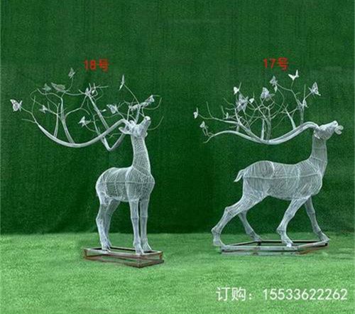 不锈钢镂空动物鹿雕塑公园摆件