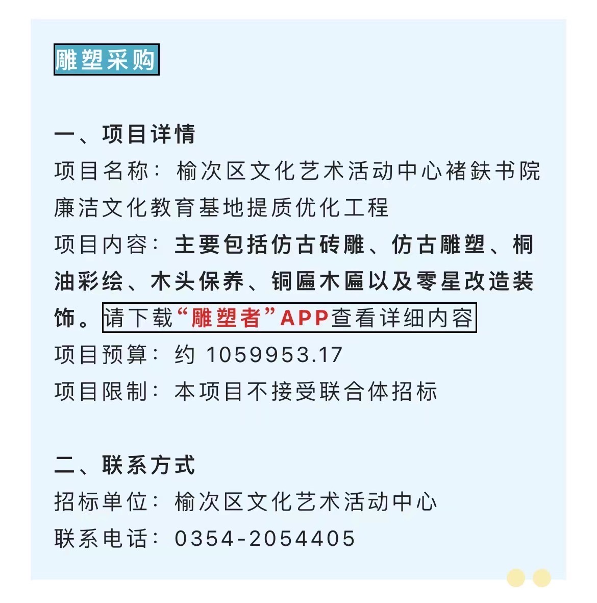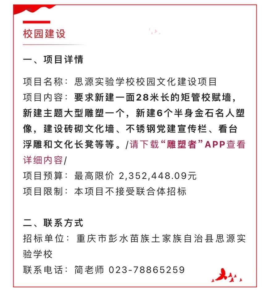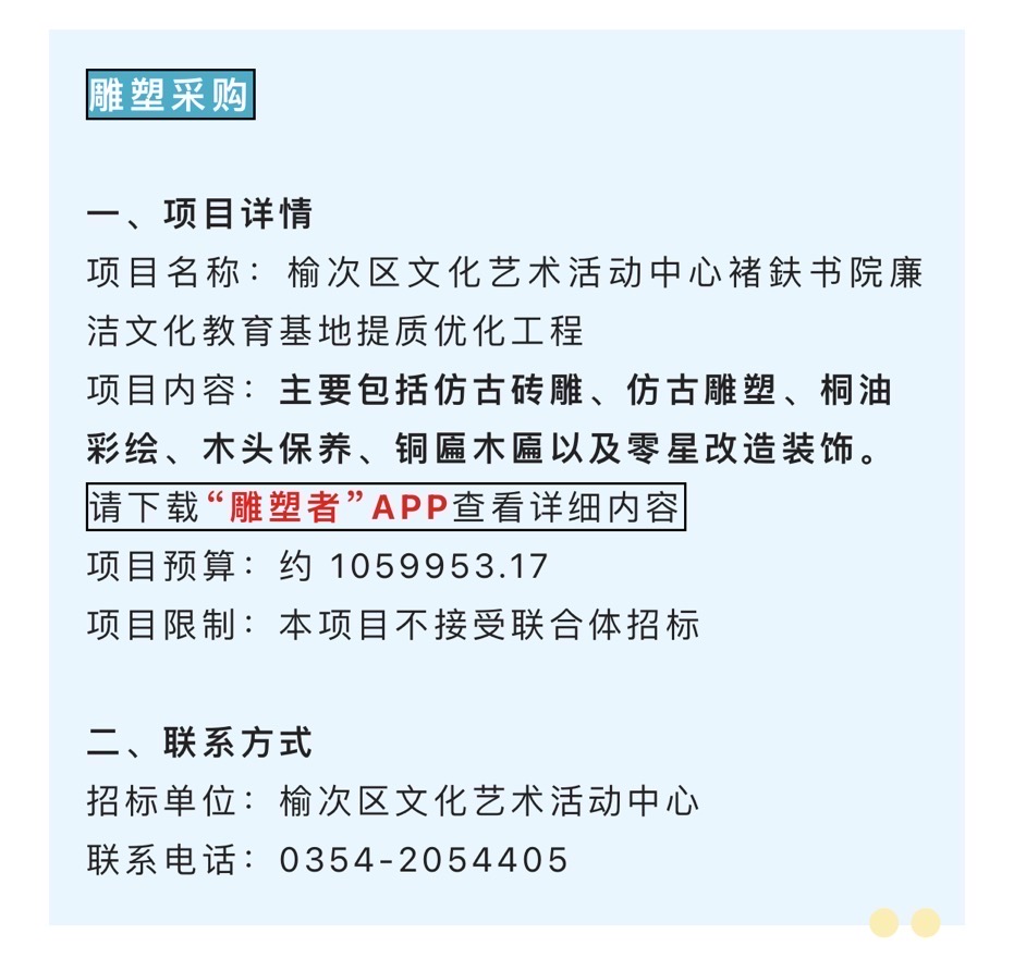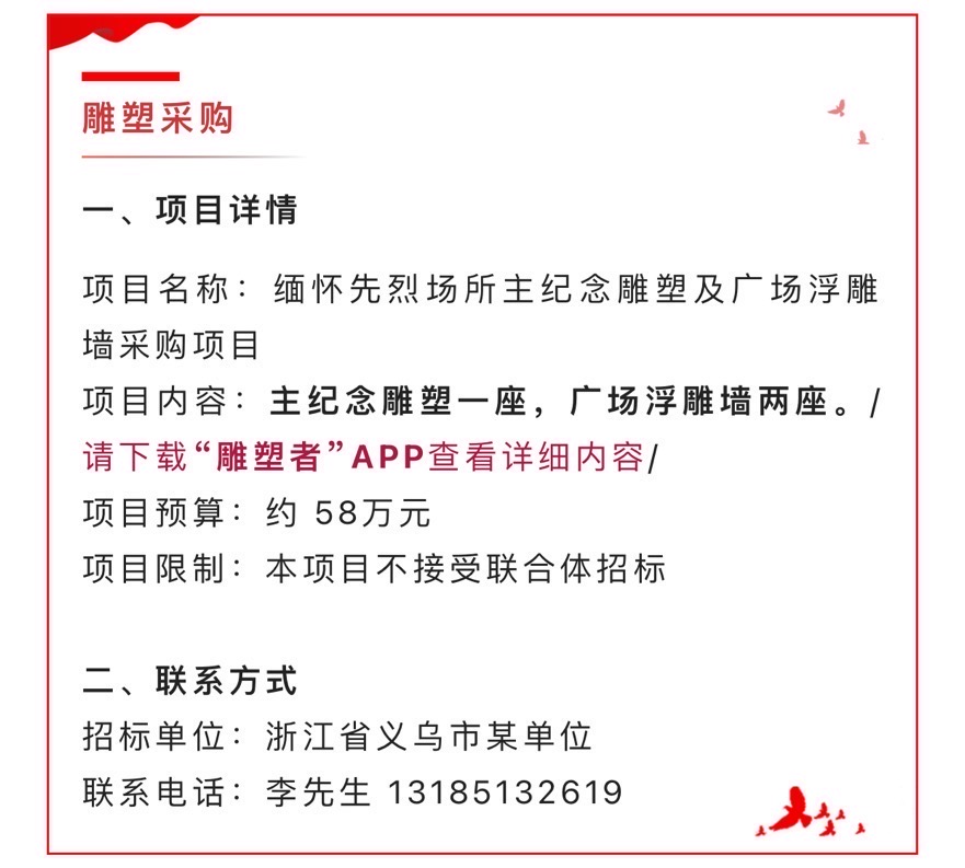今日鑫招标信息✨雕塑采购项目 详情请在主页招标信息模块中查看