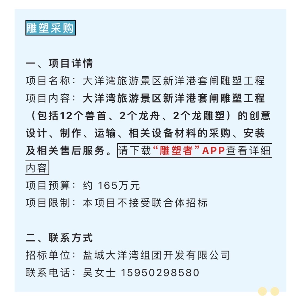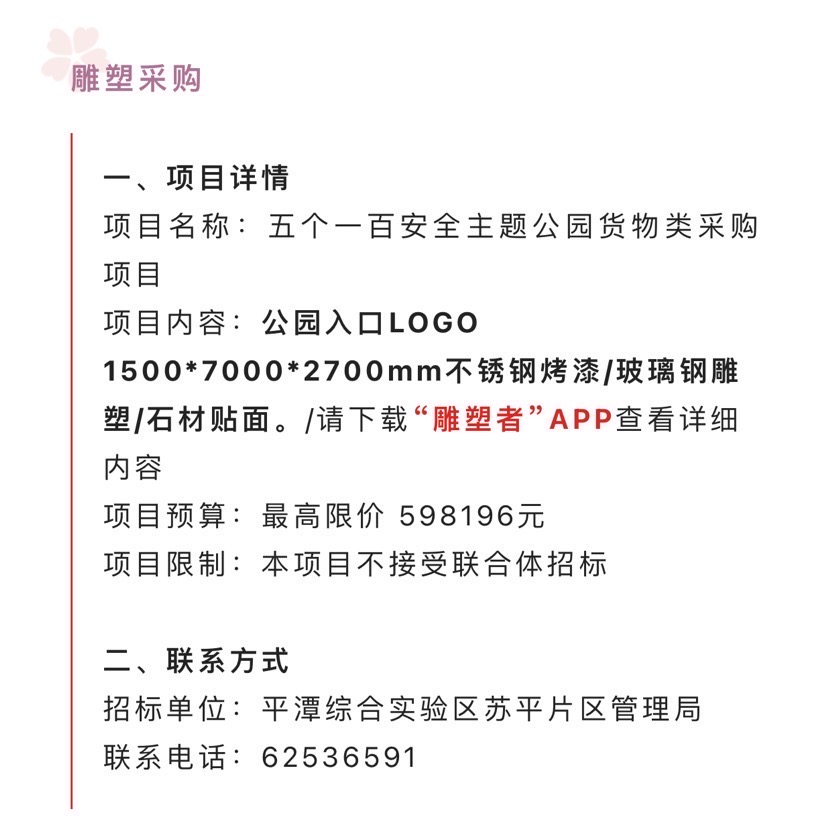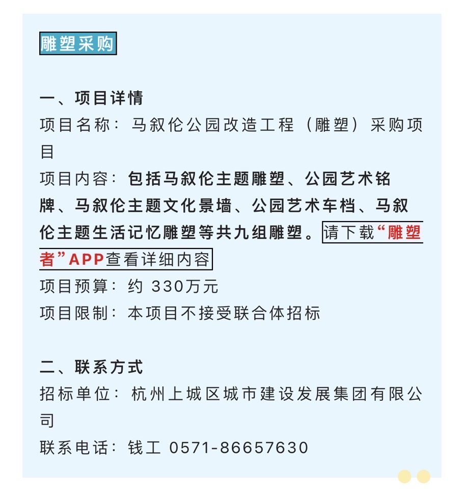 #雕塑采购 今日【招标信息】✨ 想做此类项目的朋友欢迎私聊交流❗️ 或在招标信息模块中查看详细内容