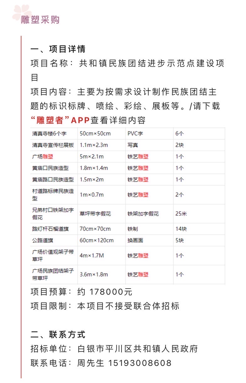 #雕塑采购 今日鑫招标信息✨ 想做此类项目的朋友欢迎私聊交流❗️ 电话☎️微信:17669522723