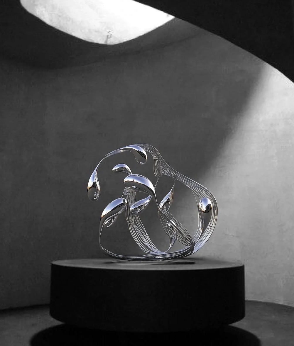 网上看到的优秀雕塑作品??分享给大家 由雕塑家朱峰先生制作。 材料:镜面不锈钢