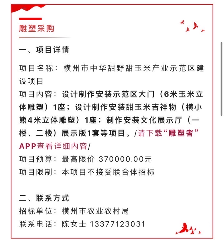 #雕塑采购 今日【招标信息】✨ 想做此类项目的朋友欢迎私聊交流❗️ 或者去首页查看招标信息板块