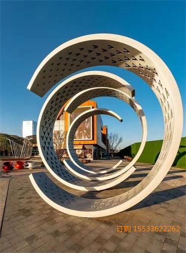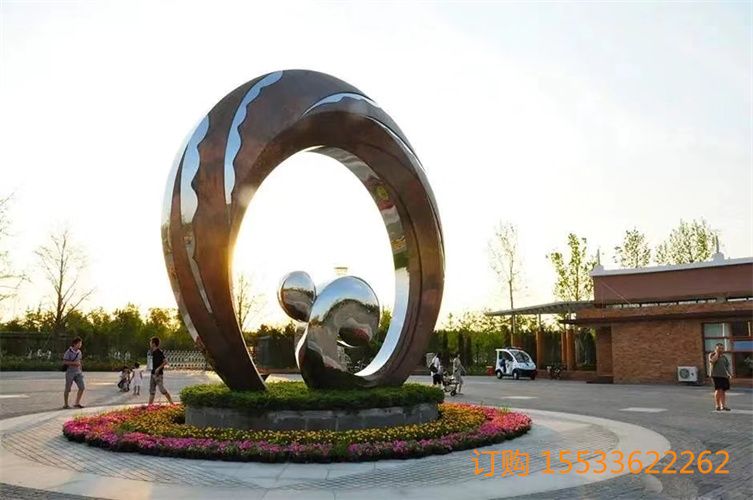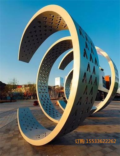 不锈钢圆环雕塑是中华民族传统文化的形态象征,象征着“圆满”和“饱满”,是自古以和为贵的中国人所崇尚的图腾。满和圆合称购成汉字圆满,浸透着中华民族先民最朴素的哲学,圆则满,满则圆,心有圆满便安宁不争,便