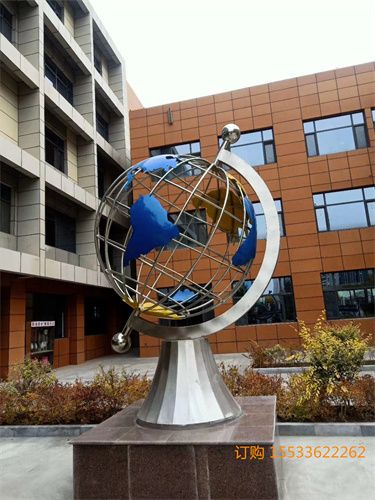 不锈钢地球仪雕塑的表面效果一般常见的就是拉丝或者喷漆的,大型不锈钢地球仪考虑到结实和安全的因素,使用的钢管直径和壁厚也会相应的随之调整。不锈钢地球仪雕塑存在于一定空间环境中,以美化、优化环境为目的,对