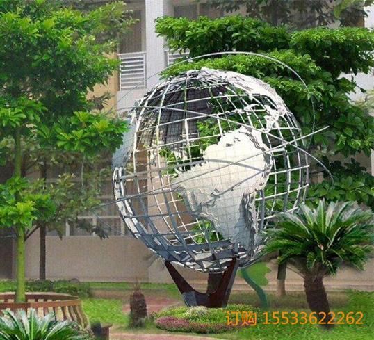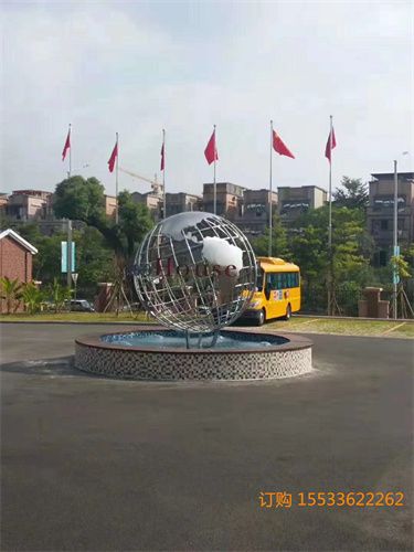 不锈钢地球仪雕塑的表面效果一般常见的就是拉丝或者喷漆的,大型不锈钢地球仪考虑到结实和安全的因素,使用的钢管直径和壁厚也会相应的随之调整。不锈钢地球仪雕塑存在于一定空间环境中,以美化、优化环境为目的,对