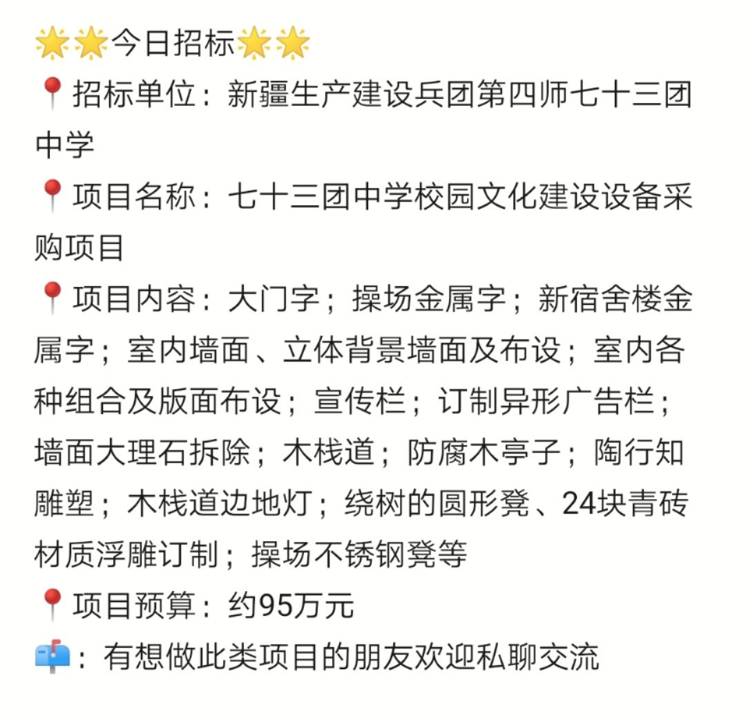 ⭐⭐今日最新招标信息⭐⭐